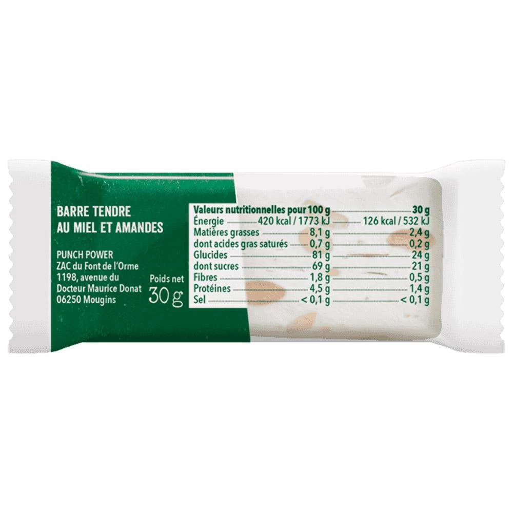 Cette barre énergétique Punch Power est parfaite si vous avez un petit creux lors d’une randonnée ou pendant que vous courrez. Constituée d’ingrédients bios, elle permet de retrouver un regain d’énergie avant que vous ne puisiez dans vos réserves.
